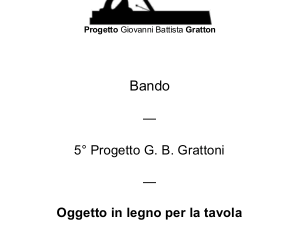 Clicca qui per scaricare il bandoIl “Progetto Giovanni Battista Grattoni” è un Concorso, promosso con cadenza biennale, finalizzato al riconoscimento di un premio a favore del partecipante che si distinguerà per capacità e creatività nella realizzazione di un progetto per un complemento d’arredo in grado di interpretare la tematica di questa edizione: un oggetto in legno per la tavola.
